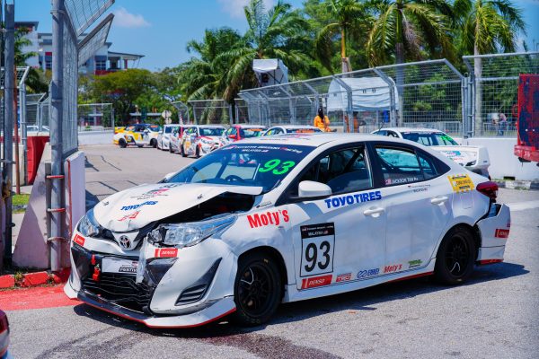 The day however, did not go as planned for Race 1 winner Tengku Djan Ley who overcooked it in the very first lap and brushed the concrete barrier. A damaged right rear wheel forced him to pit but rejoining the race two laps down essentially concluded his challenge.
