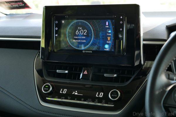 Inside the cabin sports some rather interesting lines. The semi digital instrument cluster, wireless Qi charging pad, and electric parking brake with auto hold make the car feel a lot more futuristic than the Corolla it replaces.