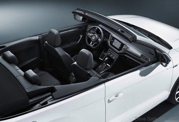 If the car is at risk of rolling over, a protection system is activated: within a fraction of a second, two thick panels extend behind the rear headrests. Meanwhile special reinforcements in the body of the Volkswagen T-Roc Cabriolet compensate for the lack of a fixed roof.