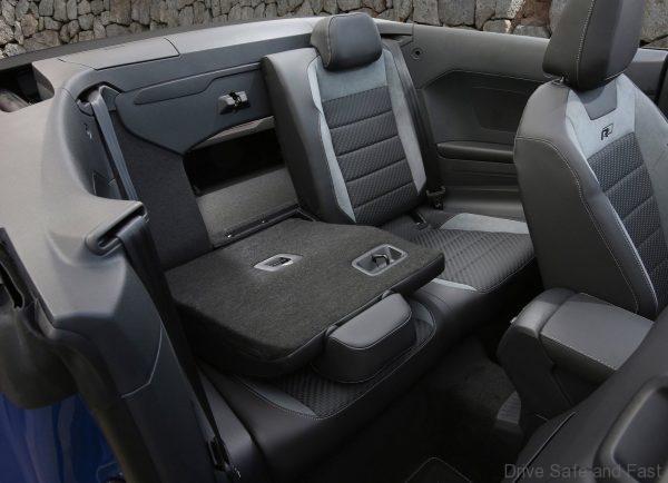 The long wheelbase provides the basis for a generous interior package. The height above the road in relation to the H-point is 599 mm for the driver and front passenger and even 616 mm for rear passengers. The luggage compartment has a capacity of 280 litres – regardless of whether the soft top is open or closed. The versatility of the T-Roc Cabriolet is highlighted by the folding rear seat backrests, released by means of levers in the luggage compartment, and the optional tow bar.