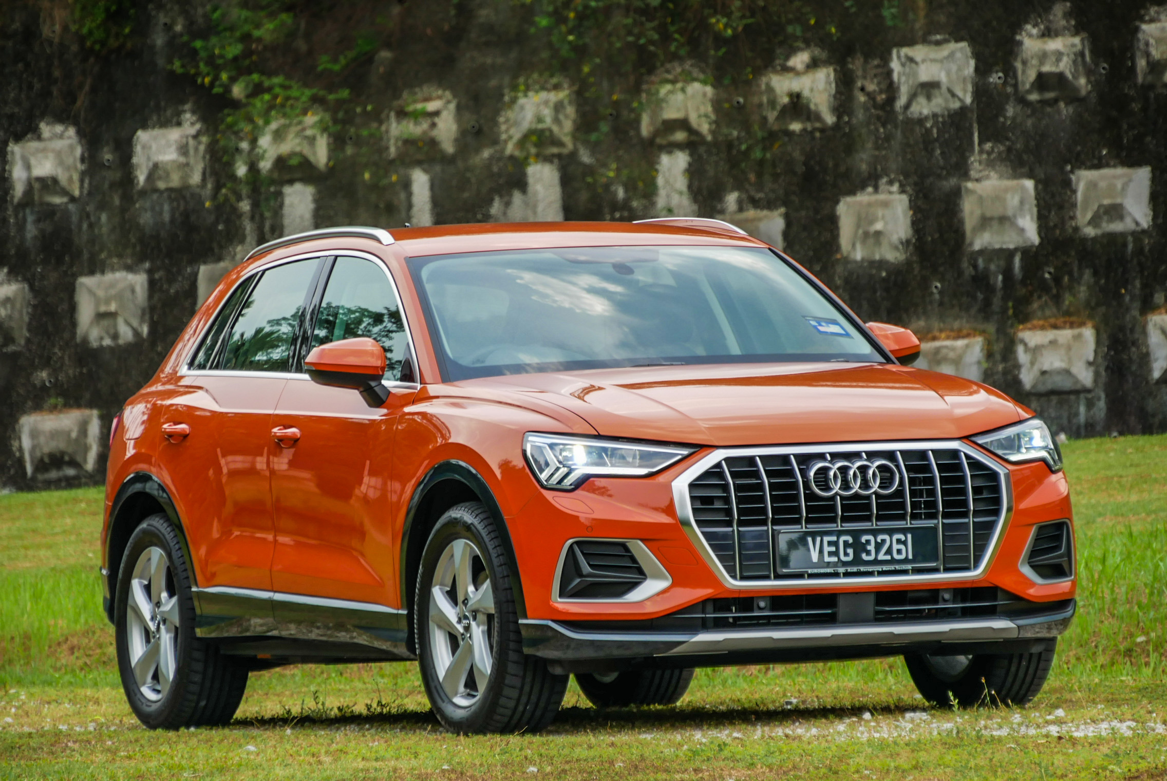 The grille paint finish and trim pieces are particularly interesting to look at. They give the harsh angles a bit more character than one would expect. The Pulse Orange exterior body colour gives the otherwise sombre Q3 some interesting character.