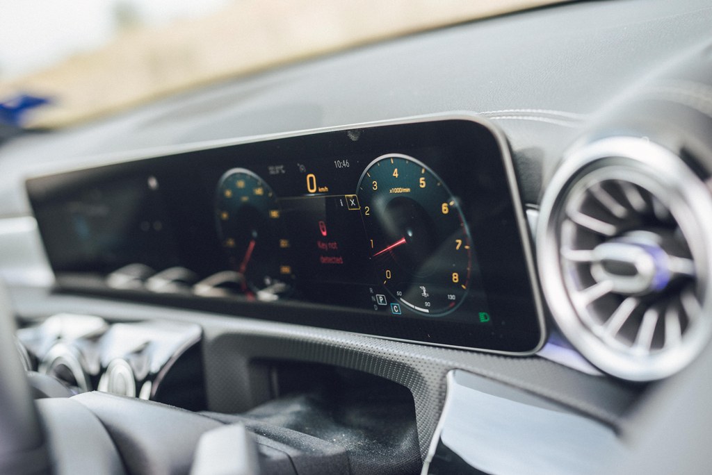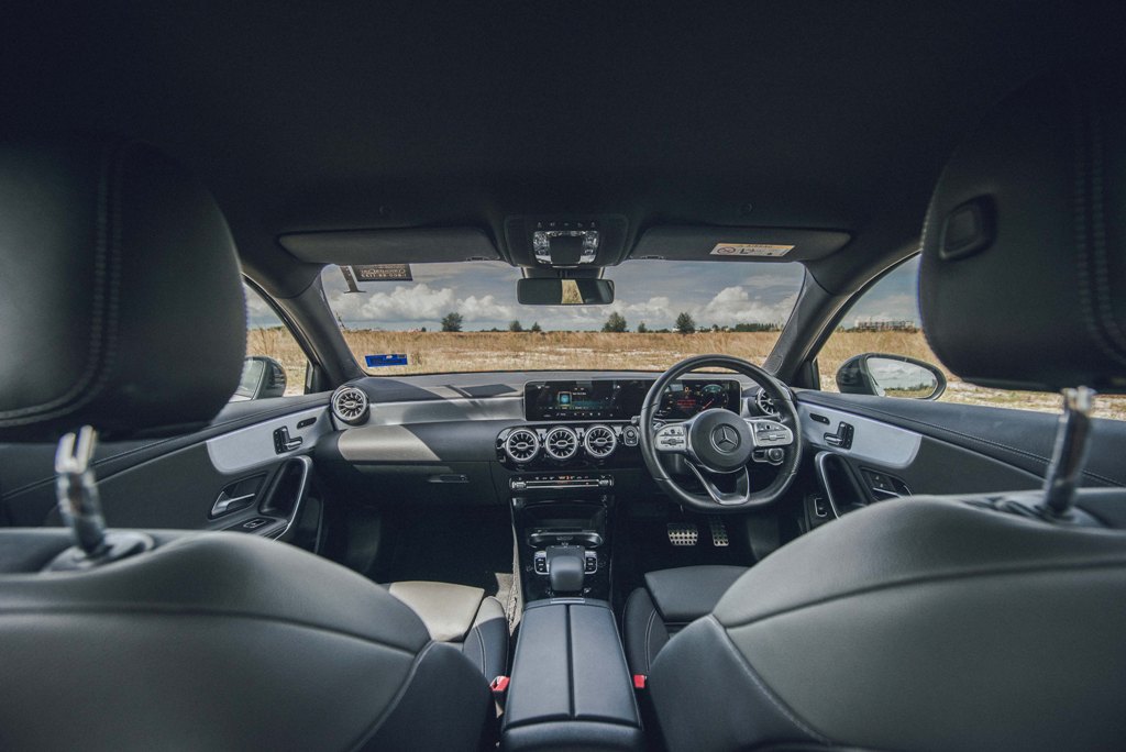 The cabin is expectedly divine, with the same layout and fancy selection of materials as that of the hatchback. There’s the Widescreen Cockpit and MBUX infotainment system that we’ve become so accustomed to as well as the stylish turbine-look air conditioning vents and the flat-bottomed steering wheel wrapped in Nappa leather. The sports seats are not the most comfortable for long distance travelling but they do well in terms of providing support during fast turns.