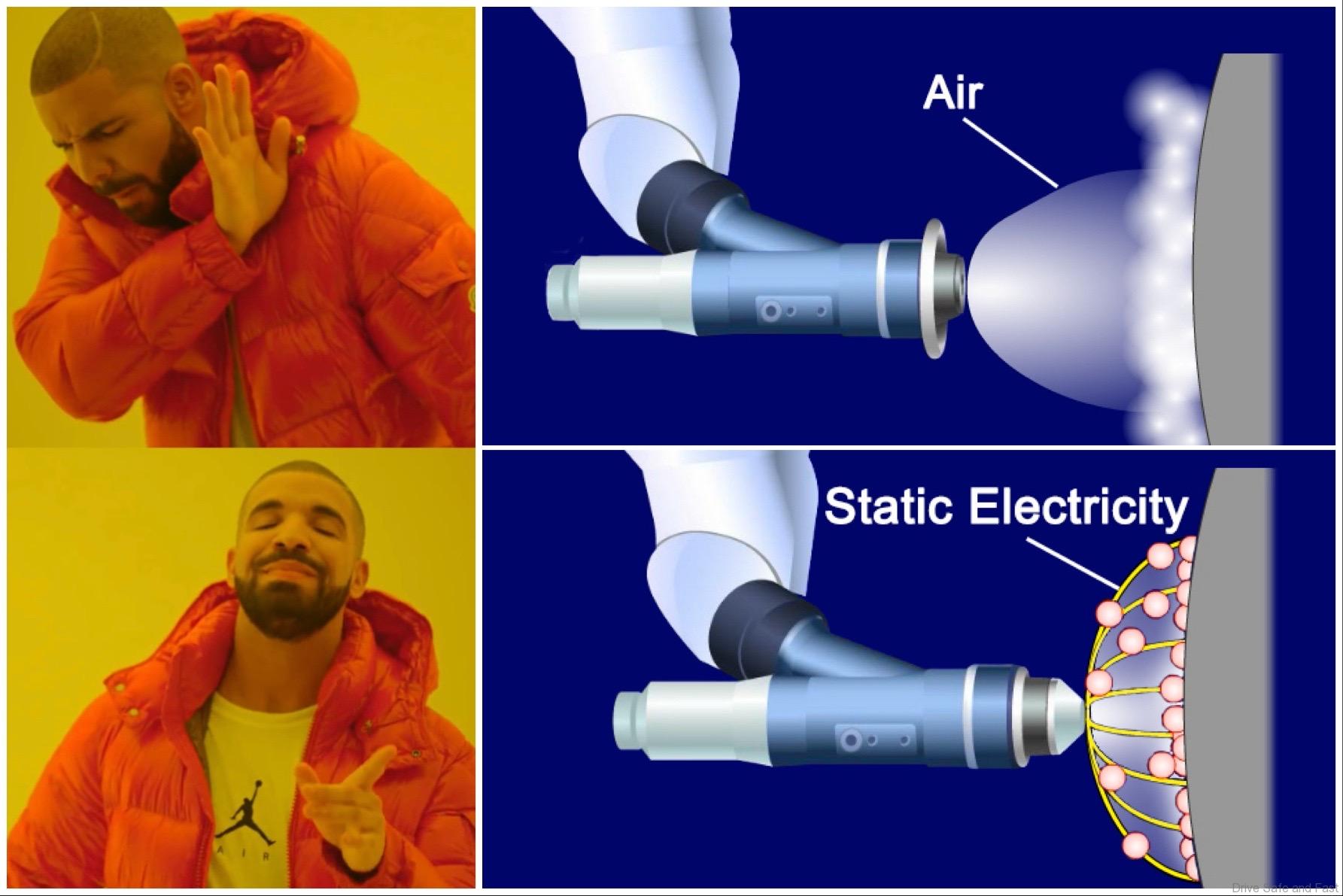 Toyota have developed a new paint atomizer that uses static electricity instead of air in the vehicle body painting process. The airless painting process is the first of its kind and achieves over 95% coating efficiency, which is the highest in the world. Conventional methods only have about 60-70% efficiency.