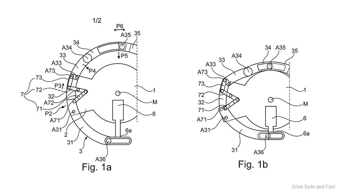 The textual description of the patent comprises twelve A4 pages. Under the heading “Shape-changing steering wheel” there follows a precise description of the functions of the new mechanics in the steering wheel. The core idea is that a single actuator changes the shape. BMW expressly points out the intended use for highly automated or fully autonomous vehicles. The engineer drawings emphasize that there are already shape-changing steering wheels, but that they prefer their proposal for safety reasons: This new BMW steering wheel design consists of several swiveling but rigid parts, which should offer a safety advantage over freely deformable steering wheels.