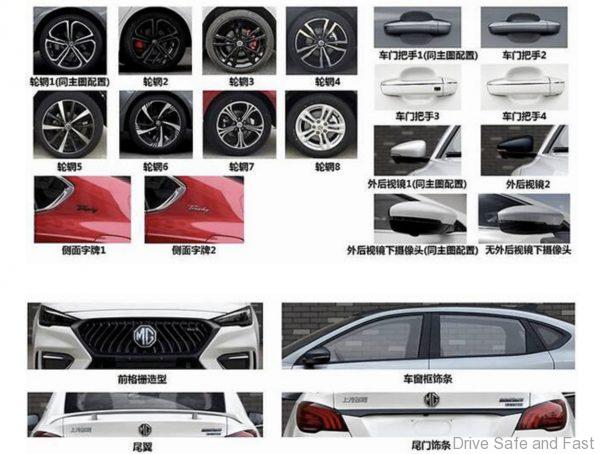 It looks like we got a bunch of rim designs, in differing finishes from white paint to dual tone alloys and more. Body coloured door handles and chrome door handles are available too. A C-pillar mounted badge in either black or chrome is seen as well. Wing mirrors in black and even one with what looks like a blind spot camera can be seen. An alternative, sportier looking black grille is shown along with what looks like tinted headlamps and tail lights. These are shown with other blacked-out trim pieces. There also seems to be a little spoiler for this fastback design.