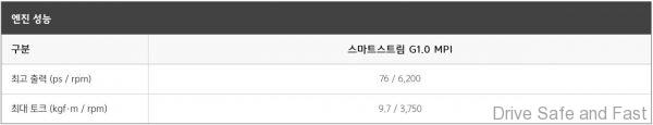 In South Korea, they’re sticking to just one powertrain option for now. A 1.0-litre MPI petrol engine and a 4-speed automatic gearbox. This engine puts out 76PS @ 6200rpm and 95Nm of torque @ 3750rpm. Enough to get the little hatch about in the city.