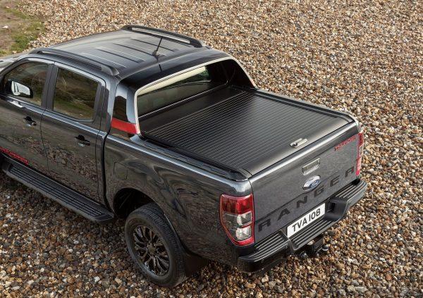 LED headlights with darkened bezels are also standard, with darkened taillight bezels at the rear. A black Mountain Top powder-coated roller shutter with bedliner divider is available as an optional extra on Thunder, enhancing load bay practicality with style.