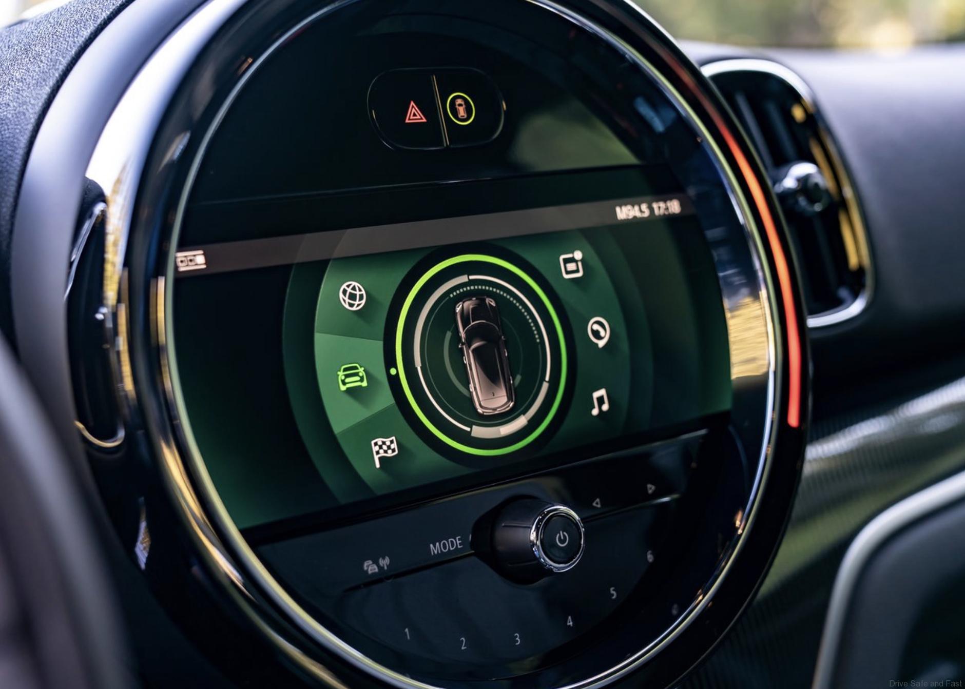 An optional digital instrument display is available for the new MINI Countryman. The display in Black Panel design behind the steering wheel has a diameter of 5.0 inches. The range of audio and navigation systems has been restructured. The Connected Media and Connected Navigation Plus options, available as an alternative to the basic configuration, each include an 8.8-inch colour screen with touchscreen function located in the central instrument that is typical of the brand. The circular control unit in the new MINI Countryman exhibits a refined surface look, with the audio control panel and the buttons for hazard lights and driver assistance systems now integrated even more harmoniously. Meanwhile touch-sensitive bookmark buttons and high-gloss Piano Black surfaces underscore the premium character of the central instrument.