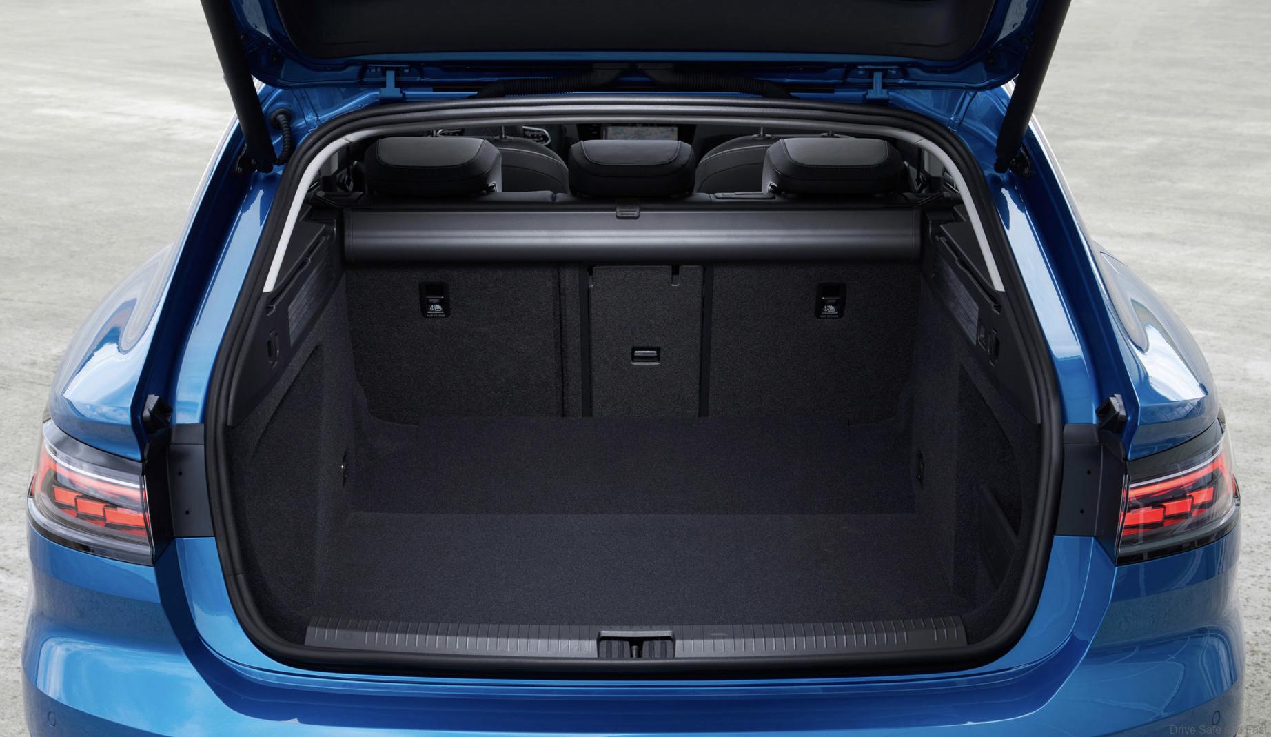 Plenty of space for driver, occupants and luggage. The Arteon is characterised by a highly functional overall concept. All occupants in the front and rear of both Arteon versions benefit from the modular transverse matrix (MQB). The maximum legroom at the rear is 1,016 mm and is a benchmark value in this class. Thanks to the unique design of its roof section, the Shooting Brake offers more headroom at both the front and rear. As standard, the rear seat backrest can be folded asymmetrically in both models. Behind the Arteon Shooting Brake’s rear seat bench is a luggage compartment capacity of up to 565 litres when loaded up to the rear seat backrest and luggage compartment cover (fastback: 563 litres). Loading the vehicle up to the front seat backrests increases the loading capacity to 1,632 litres (fastback: 1,557 litres). In both cases, the load space has a maximum length of 2,090 mm (up to the front seats).