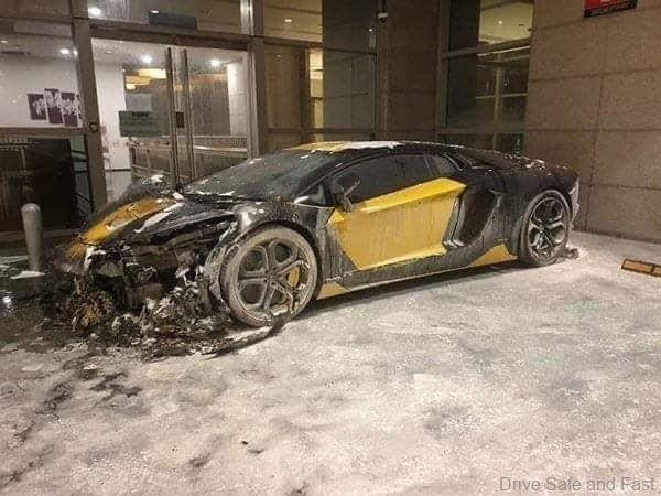 There have been two totalled Lamborghinis, one in England, right out of the car showroom and now this unit that caught fire in just one week.