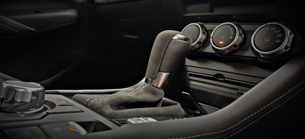 - dark grey suede upholstery on the seats, steering wheel, gear knob and armrest