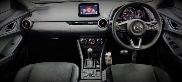 To achieve a distinctive look and feel on the exterior, the limited edition CX-3 is fitted with a Front Lip Spoiler & Rear Bumper Diffuser. The body features a two-tone finish with a Piano Black Roof and matching rear trunk spoiler. The limited edition unit also features gunmetal design 18-inch alloy rims and brushed aluminium finished rear exhaust tips that have been specially developed to accentuate the overall dynamic sporty outlook of the vehicle.