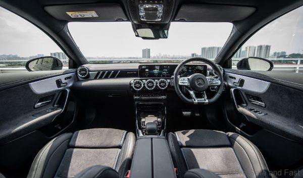 In terms of performance, it’s identical to the saloon model. The 2-litre inline 4 turbo engine sends 306hp and 400Nm of torque to all four wheels via an AMG SPEEDSHIFT 7-speed dual clutch transmission. This gives it a respectable 0-100km/h time of just 4.7 seconds.