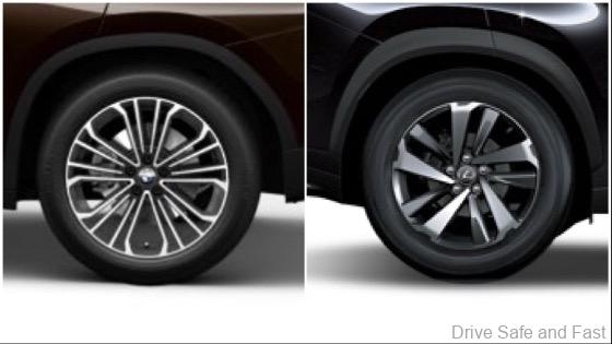 Here BMW gives you larger 19″ alloy wheels, while Lexus gives you 18″ wheels. Here’s what they look like:
