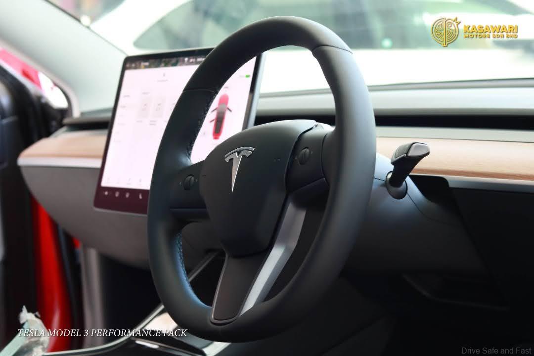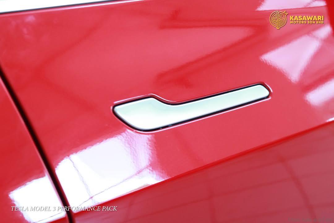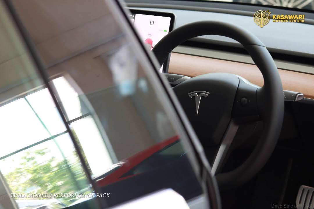 For now, there’s one car in white and another in red. White is a standard colour for the Tesla Model 3 while the red multi coat version costs something like RM10,000 extra after conversion, at least that’s what the conversion from Japanese Yen states.