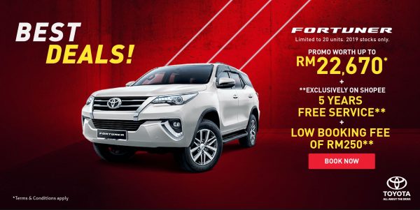 There will be promotions (*for selected 2019 stocks only) at the online stores from time to time with exclusive money-saving offers. For example, there is currently a special promotion available for the Toyota Fortuner SUV (limited stocks) worth RM22, 760and it comes with 5 years of free scheduled maintenance (terms and conditions apply).