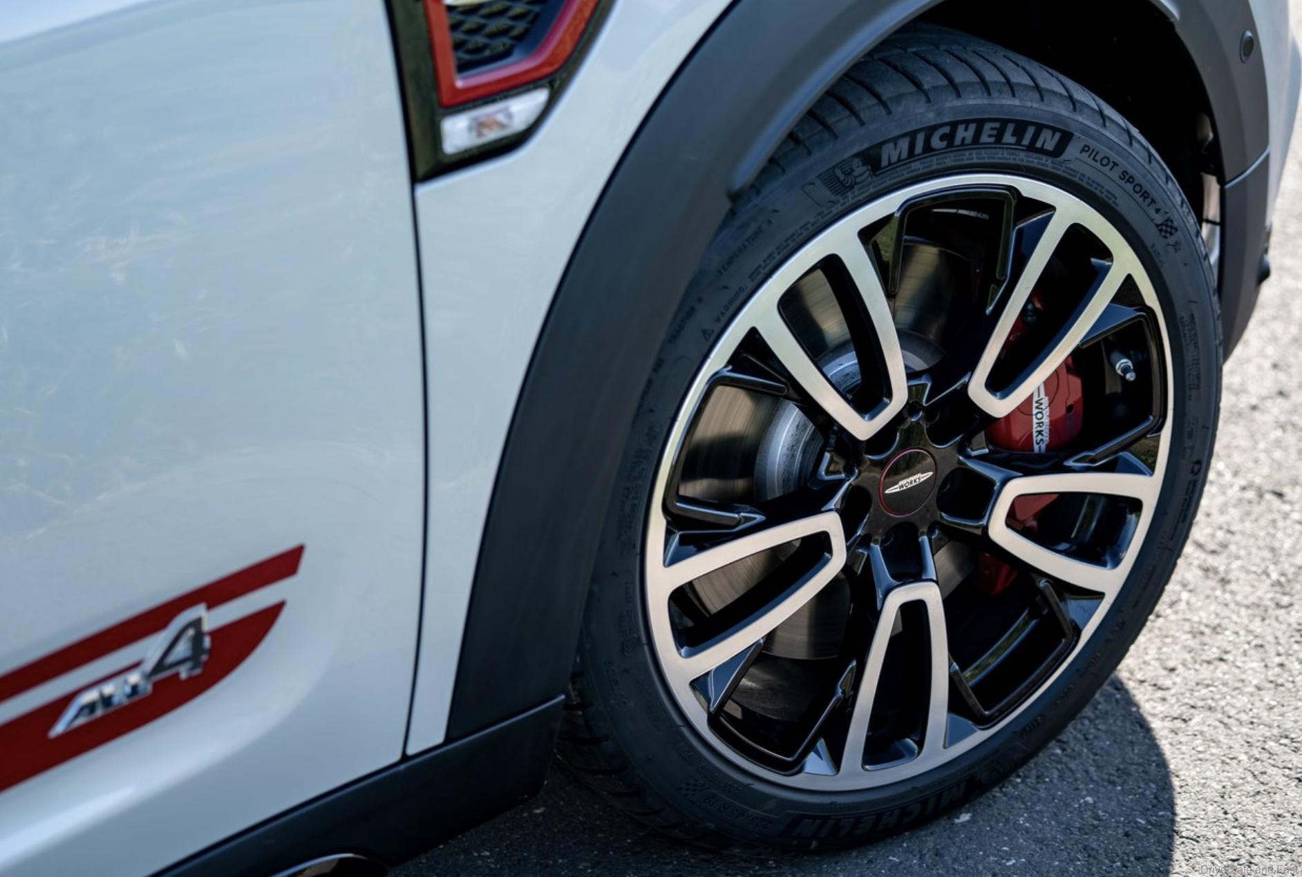 In order to ensure not only hallmark agility, but also particularly high steering precision and handling that can be masterfully controlled even in highly dynamic driving situations, the new MINI John Cooper Works Countryman features a body structure and a connection with the chassis, which is characterised by high rigidity. In addition to model-specifically modified components, the chassis also features suspension and damping features refined with racing expertise, DSC (Dynamic Stability Control) and electromechanical steering. As an option, the new MINI John Cooper Works Countryman can be equipped with an adaptive chassis. Its standard equipment includes a sports brake system with 4-piston fixed caliper disc brakes on the front wheels and single-piston floating-caliper disc brakes on the rear wheels, as well as 18-inch John Cooper Works light-alloy wheels with brake callipers painted in Chili Red.