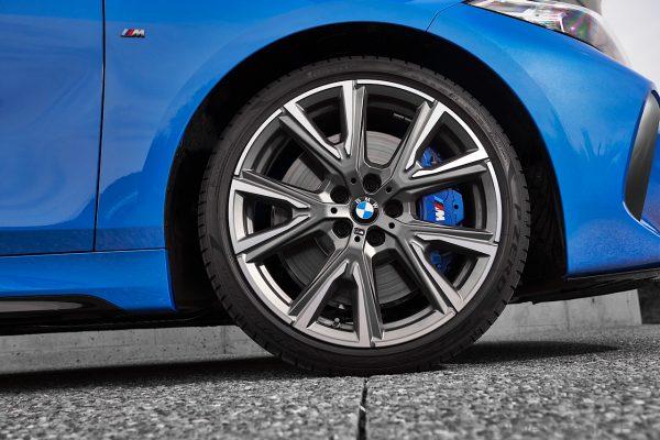 The front and side air inlets, exterior mirror caps and the 100-millimetre exhaust tailpipes in Cerium Grey underscores its status as the sporting flagship of the range. The sporty compact model comes with the newly designed 19-inch light alloy wheels in V-spoke Style 557 M Bicolour. At the rear, three-dimensional two-part taillights with the classic BMW L-shape emphasise the vehicle’s width. The BMW M135i xDrive comes exclusively with a BMW M rear spoiler.