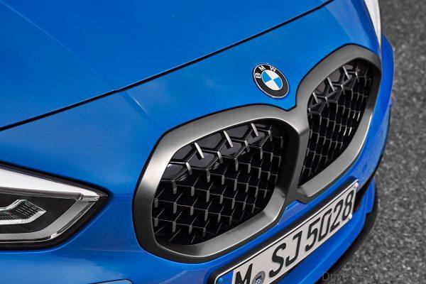 The All-New BMW M135i xDrive stands out with a distinctive kidney grille in Cerium Grey, whereby the exclusive mesh-design replaces the classical bars. For the first time in this model range, the two kidney grilles are now merged in the middle. Now slanting in design, the Adaptive LED headlights complete with high-beam assistant offer a particularly modern appearance.