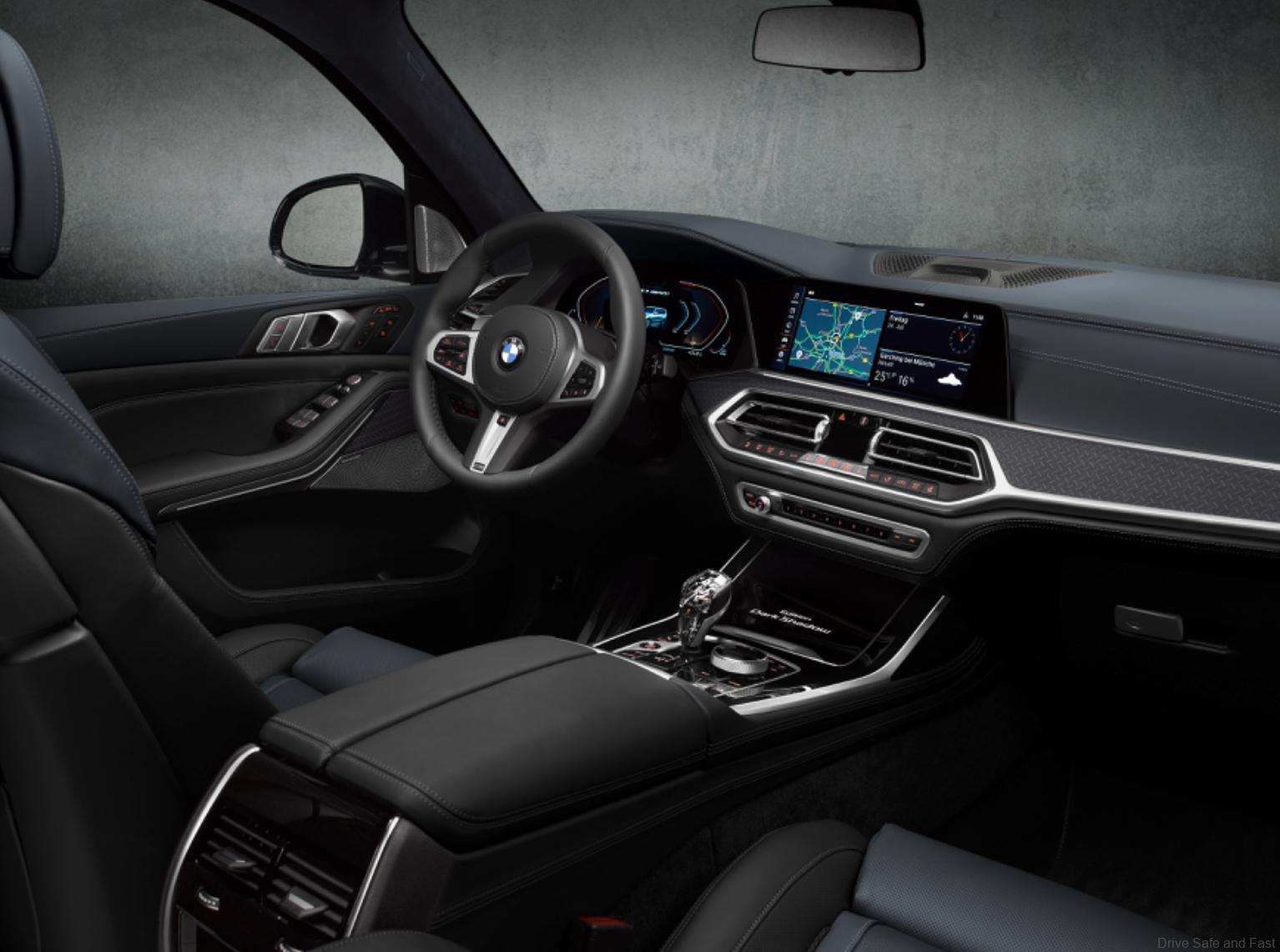 An impressive combination of sporty flair and luxurious ambience also characterises the interior of the edition model, which is available with either six or seven seats. The driver and front passenger enjoy the superior sporty flair of the luxurious SAV on electrically adjustable comfort seats with memory function. An M leather steering wheel and BMW Individual equipment details specially developed for the BMW X7 Edition Dark Shadow bear witness to the very highest level of exclusivity. A contributing factor here is the BMW Individual Merino full leather upholstery in the specific two-tone variant Night Blue/Black with contrasting seams, as is the BMW Individual roof liner in Night Blue with Alcantara finish. The upper part of the instrument panel and the armrests of the doors are covered with nappa leather in Night Blue. Black merino leather is used in the lower section of the instrument panel and on the front backrests. In addition, BMW Individual interior trim finishers in Fineline Black with aluminium inlays contribute to the fascinating aura of the edition model’s interior. In the centre console area, the unique design is underscored by means of BMW Individual interior trim finishers in Piano Black finish bearing an edition logo.