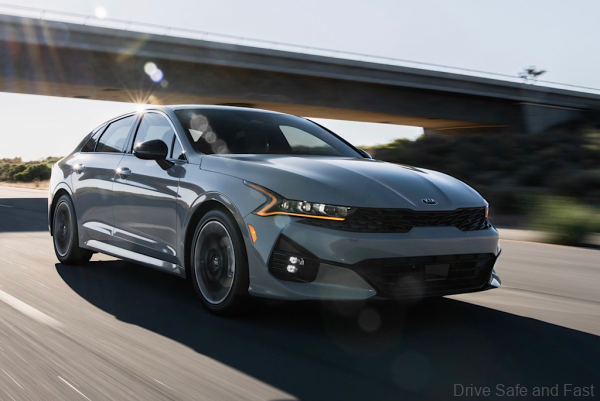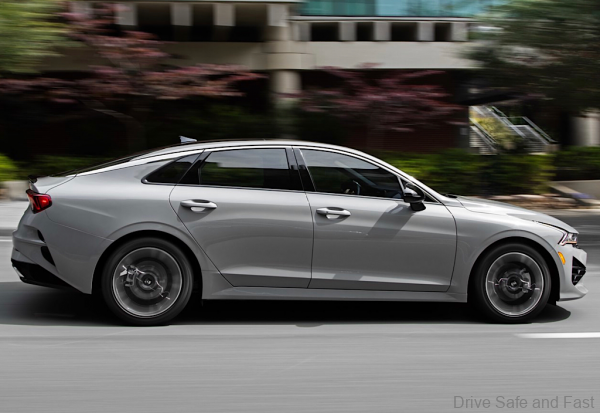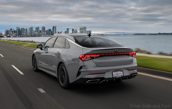 The new K5 sports a futuristic and premium look, with Z-shaped Daytime Running Lights, a modern Tiger Face grille, and a fastback silhouette.