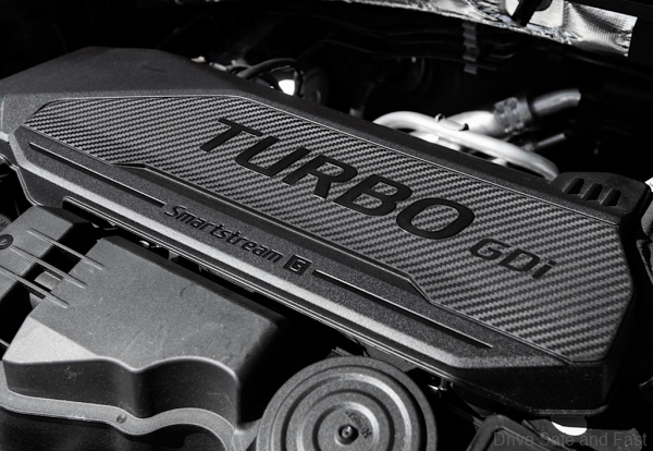 - 2.5-liter turbocharged GDI + MPI inline 4, 290hp four-cylinder engine making 290 horsepower and 422Nm of torque. 0-100km/h in 5.8 seconds with 8-speeed wet DCT