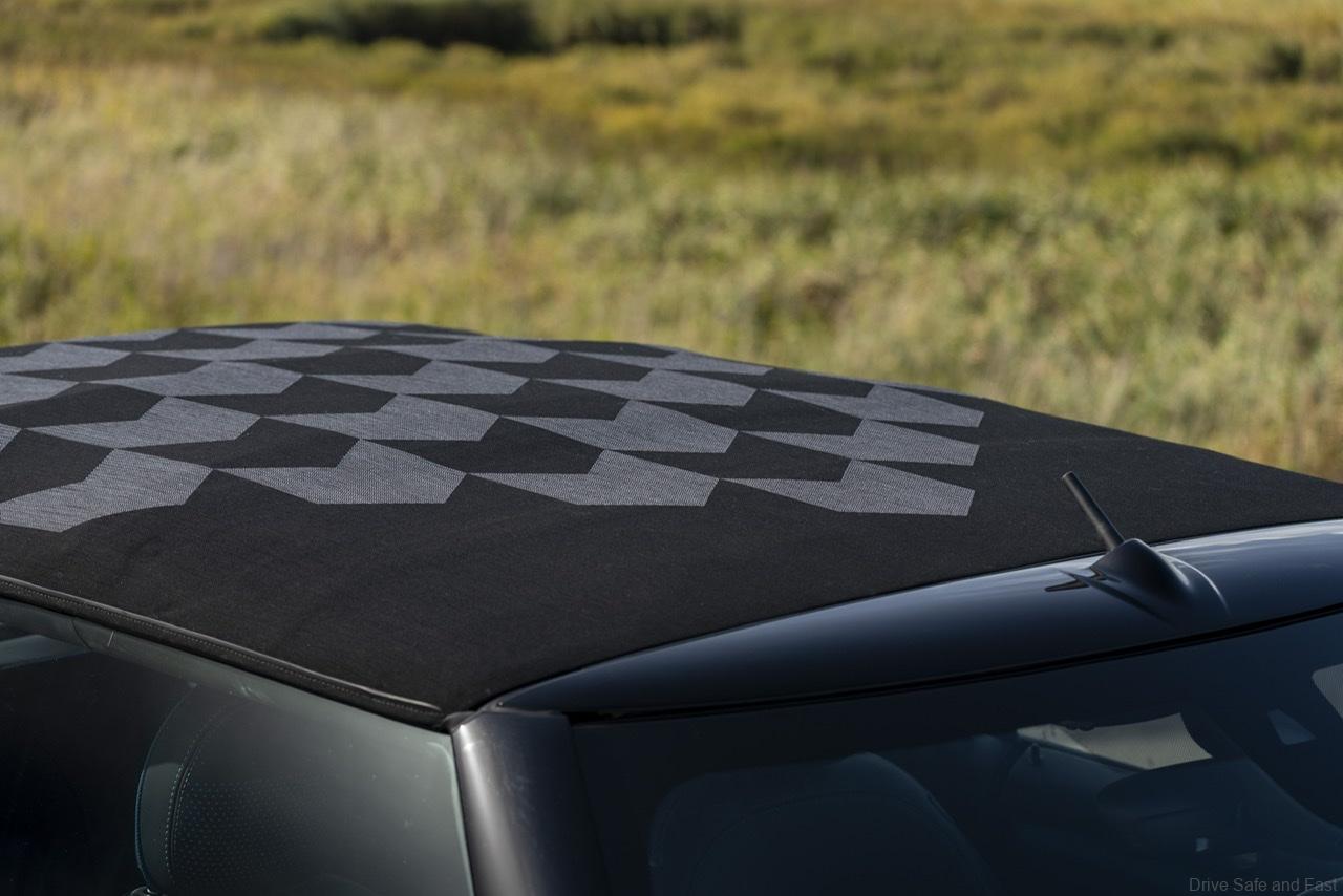 The MINI Yours Soft-top Sidewalk offers protection against rain and sun, and opens electrically within 18 seconds even with the car moving at up to 30km/h. The electric-powered, 3-in-1, black soft-top roof features an interwoven “Sidewalk” pattern in Titanium Grey. The sporty bonnet stripes, embellished with a geometric pattern, put an individual spin on that iconic MINI Convertible look. The 17-inch light-alloy Scissor Spoke 2-tone wheels of the New MINI Convertible Sidewalk Edition are also a model-specific design feature.