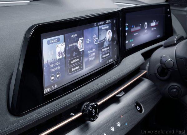 The display interface features both a 12.3-inch instrument monitor and 12.3-inch centre display along a single horizon. By displaying multiple facets of information on one horizontal plane, information can be quickly digested without the driver being distracted from the road. The two displays are oriented in a wave-like shape to ensure important vehicle information, such as battery information, range and navigation, can be easily reached and scrolled through with a simple swipe. Further information can be swiped between the displays to customise and prioritise the information displayed just behind the steering wheel for an unparalleled bespoke experience.