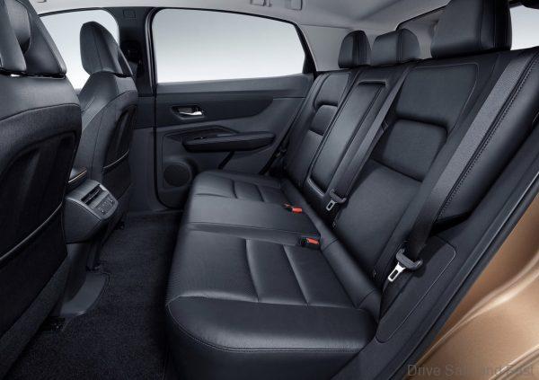 Rear-seat passengers are treated to an abundance of headroom and legroom, with the flat cabin floor allowing them to easily cross their legs and relax. Accents and ornamentation are carried into the rear space to give all the same sense of sophistication and comfort. The thin front seats are positioned to obscure the B-pillar, offering occupants an outward panoramic view. The Ariya is also equipped with a sunroof giving its openness and even stronger feel.