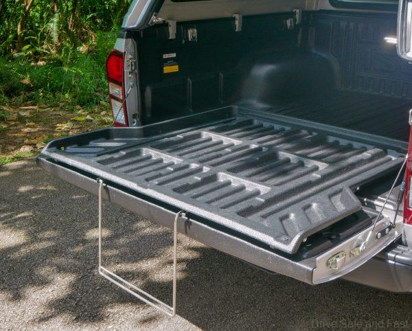 Take a look at the three biggest innovations on the new D-Max. The liftgate in the rear is the only one in the segment that opens softly and can be closed with just a finger. The bed can be outfitted with a simple but useful slide-out tray from the factory. These optional accessories are well worth adding, as they make the D-Max a lot more convenient to use as a pick-up.