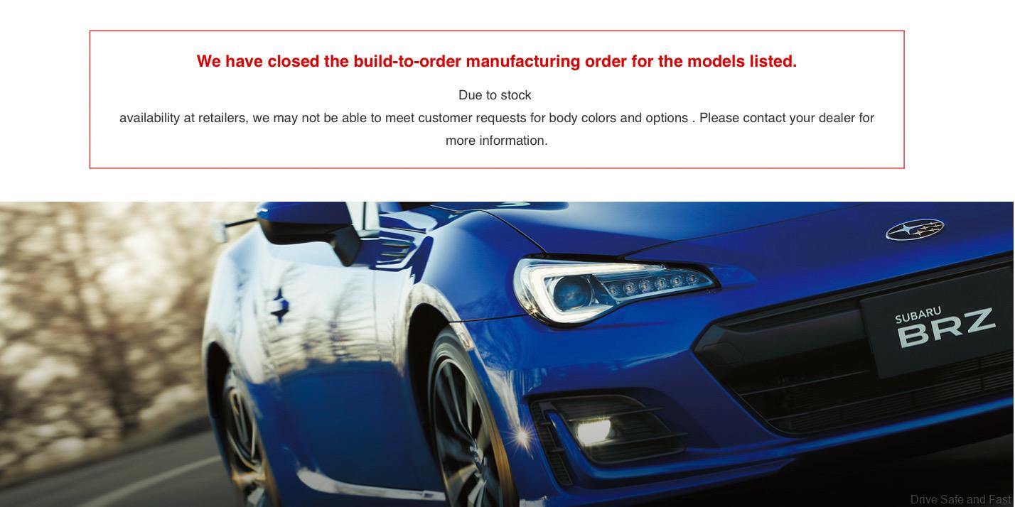 It looks like Subaru have stopped manufacturing the BRZ based on a notice on the company’s Japanese website. The BRZ page still shows the available options on the car, but a little notice now warns that the car is no longer available for build-to-order requests.
