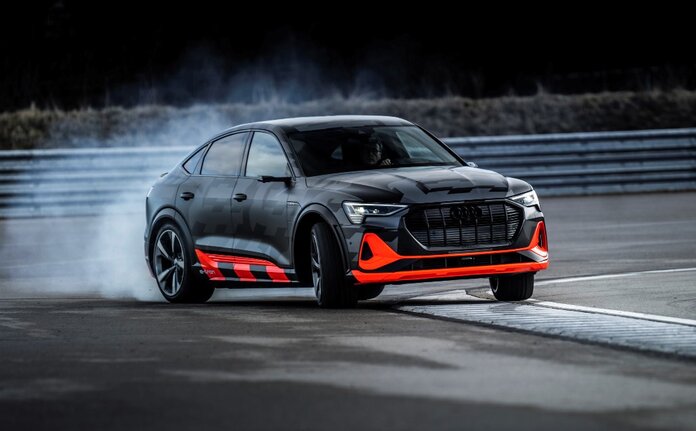 At the dynamic limit, on the e-tron S, the wheel brake slightly decelerates the inside front wheel in cornering and on the e-tron, the front and rear wheels. Thus, via the effect of the mechanical axle differential, more torque is distributed to the outside and the car follows the steering command in the cornering direction with particular agility. The traction control system (TCR) acts at one-millisecond intervals. This is achieved because individual functional components of the electronic stability control (ESC) have been shifted into power electronics directly on the electric motors.