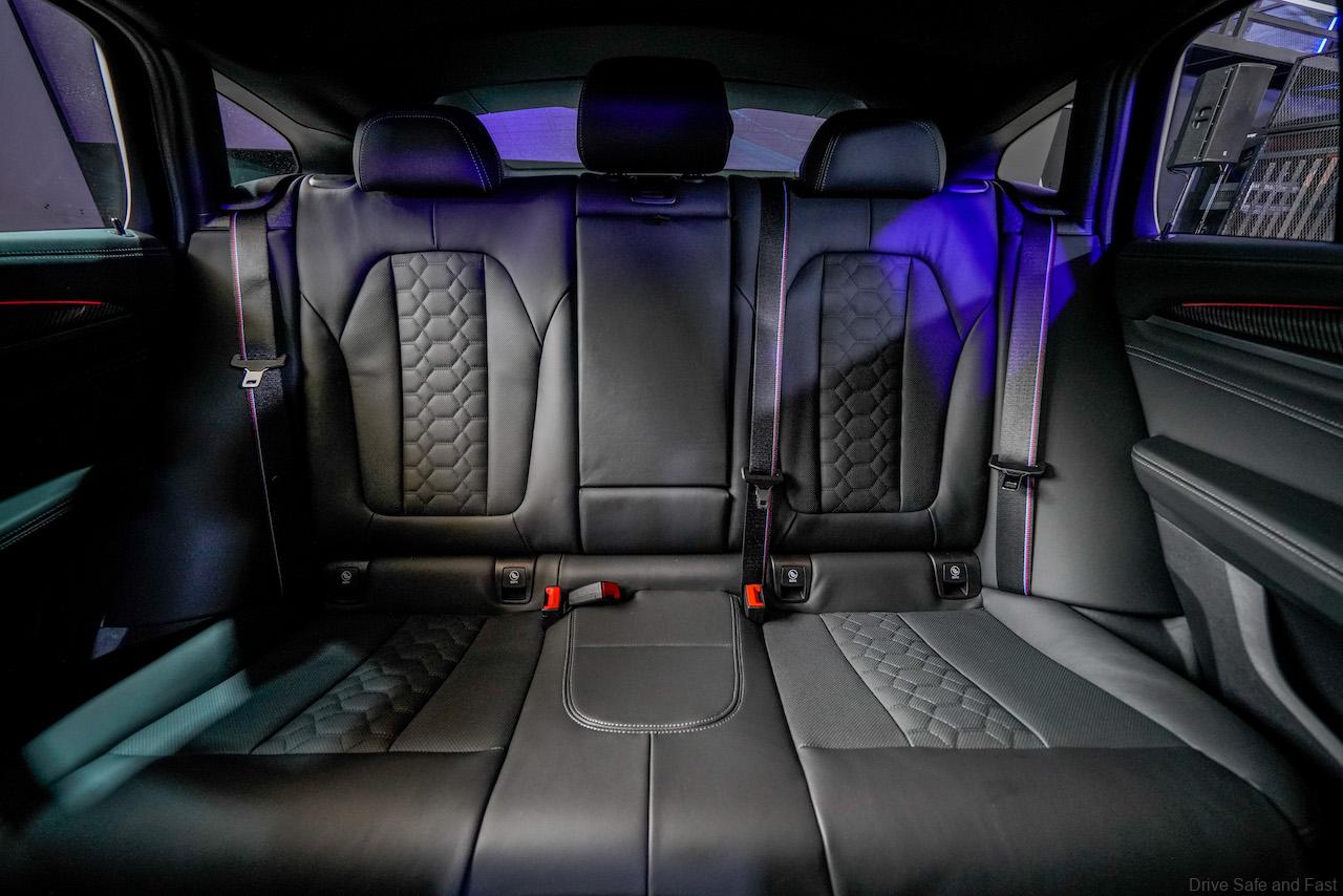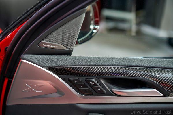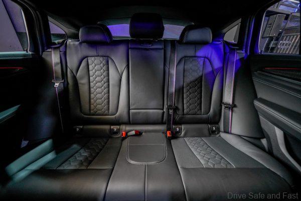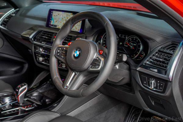 This model combines the best of BMW’s X and M cars, so comfort is not neglected. You get sculptural M Sport seats with illuminated M badge below the semi-integrated head restraint. These are upholstered in premium Leather Merino upholstery. It’s also plenty practical, with a 525L boot that can be expanded to 1430L with the rear seats folded down.