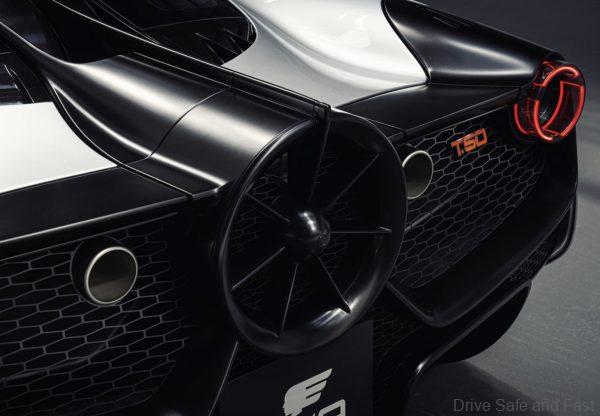 The one place where the T.50 does make full use of electronics is with its 400mm rear mounted fan. This fan, believe it or not, is responsible for the car’s aerodynamics. It spins up to 7000rpm and gives the driver 6 different aero settings: Auto, Braking(these are automatically determined). Custom settings include High Downforce, Streamline, V-Max Boost and Test Mode. The fan can increase downforce by 50% (in Braking Mode 100% more downforce is generated); reduce drag by 12.5%; add around 50PS to the car’s output, in combination with ram-air induction; and cut braking distance by 10m from 240km/h.