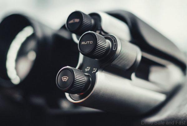 Front and centre in the driver’s view is a large (120mm) analogue, flood lit rev counter – its needle milled from aluminium. Either side of the steering wheel, three aerospace-grade aluminium rotary switches are positioned within easy reach. On the right, the switches control the heating / ventilation and air conditioning, while to the left the two lower controls are for wipers and lights. The top-left dial is the most intriguing and unique – marked with a graphic of the T.50 fan, this configures the four driver-selectable aero modes.