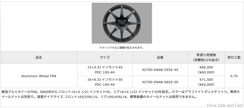 This time, the newly set infinite parts for S660 include bumper type aero parts, newly designed forged aluminum wheel “FR8” based on strength analysis, performance damper ? etc. that dampen vehicle vibration and improve running stability ? We have a lineup centering on parts that expand the fun of. We are also continuing to develop carbon front sports grilles, rear wings, aero bonnets, engine hoods, sports silencers, semi bucket seats, etc. These parts are planned to be added to the lineup by the end of 2020.