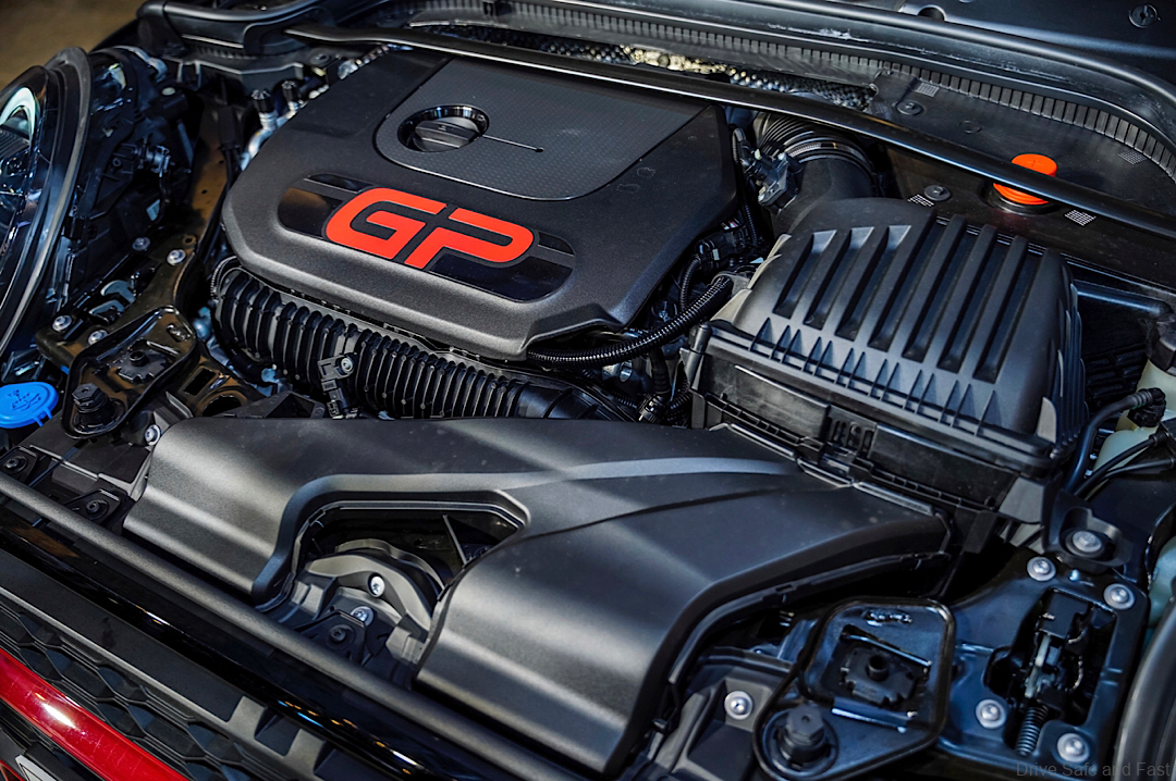 The MINI John Cooper Works GP comes with the highest output engine to ever be put into a production MINI 3-Door. The 2-litre TwinPower Turbo petrol engine produces 306hp and 450Nm of torque. It sprints from 0-100km/h in just 5.2 seconds and has a max speed of 265km/h. An 8-speed Steptronic transmission with mechanical differential lock is featured here.
