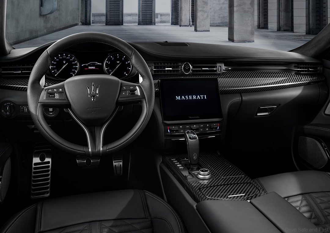 The new Trofeo cars add some new technology, including new Advanced Drive Assist Systems in the form of Active Driving Assist on urban roads and ordinary highways. They also get larger 10.1″ displays compared to the 8.4″ display in the Levant Trofeo.