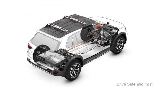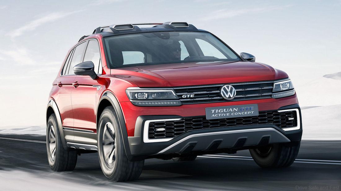 PRESS RELEASE: The five-seater concept vehicle is based on the current second-generation of the Volkswagen Tiguan. The all-wheel plug-in hybrid system of the Tiguan GTE Active Concept – with its turbocharged gasoline direct-injection engine (110 kW / 150 PS) and one electric motor at the front axle (40 kW / 54 PS) and one at the rear axle (85 kW / 115 PS) – reflects the broad range of technical capabilities of the new generation of SUV’s.