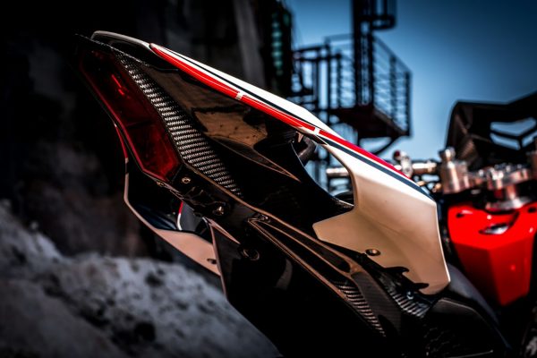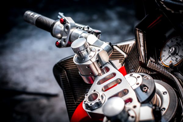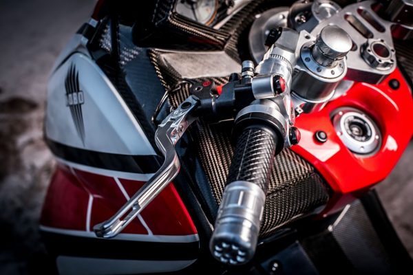 The braking system comprises a double carbon disc measuring 330 mm at the front and a single 220 mm disc at the rear. Clamping these discs are Brembo GP4-RX billet aluminium calipers that come with nickel plating borrowed from MotoGP. Needless to say, these calipers cost a fortune.