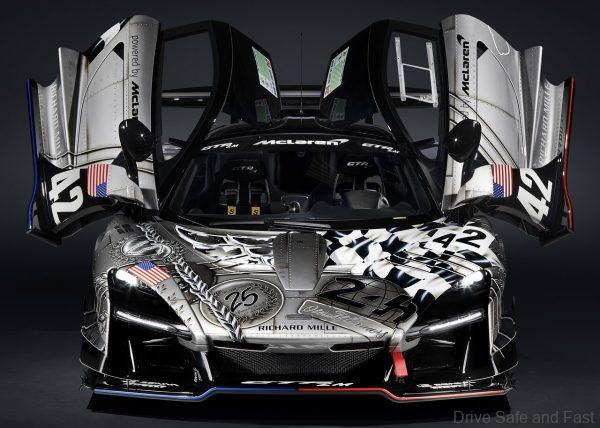 McLaren Senna GTR LM 825/5 is a modern reinterpretation of the livery, drawing in new elements, such as pole position lap times; contemporary race trophies and Le Mans branding cues.