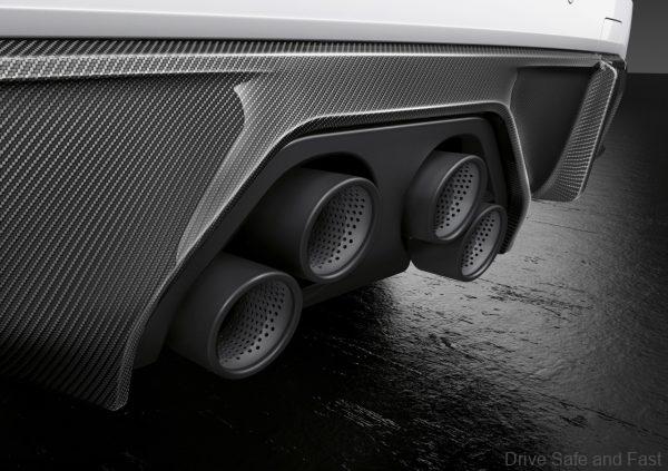 I think we should rip the band-aid off quickly and start off with the new centrally-mounted quad exhausts. This M Performance titanium tailpipe trim module and titanium silencer system. Be warned, it’s pretty unsightly and if you have trypophobia, the closeup might make you a little nauseous. Also, we’re not even sure how that qualifies as a diffuser, but perhaps the engineers found this shape to be effective.