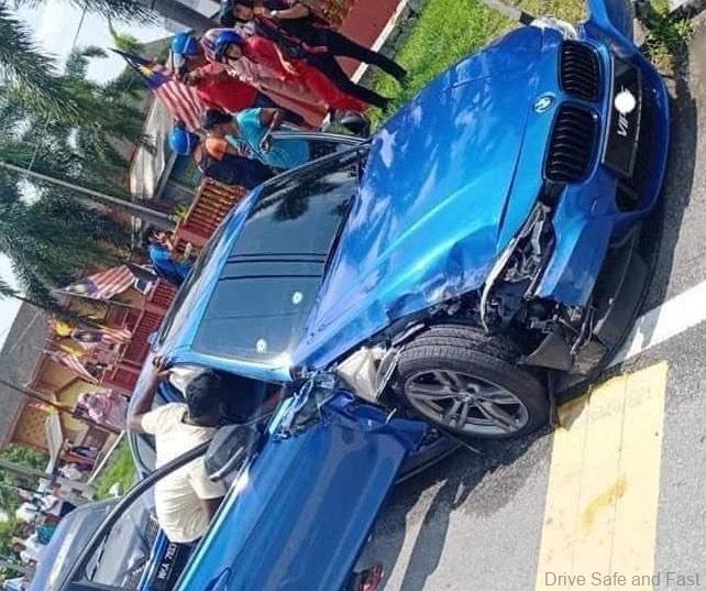 Judging from the damage inflicted to the blue 3 Series based on the pictures of the incident, the crash might have occurred at a high speed. Seeing as both front and side curtain airbags have been deployed, in addition to the moderate damage sustained to the front of the BMW. It would appear that the accelerating car was stopped by a parked Proton Wira, which bore the brunt of the collision with the BMW. Judging from the pictures too, only two bullets were fired at the car.