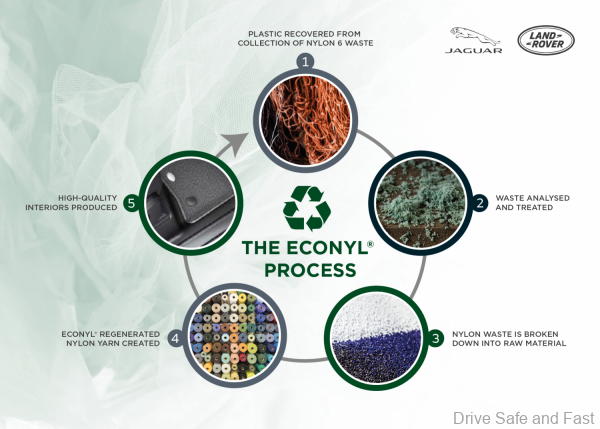 Jaguar Land Rover is working with ECONYL® nylon to develop high-quality interiors made from ocean and landfill waste.