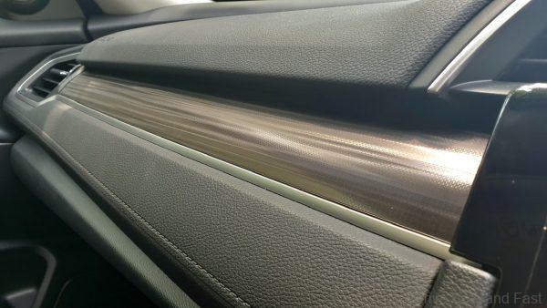 Inside, the differences are even more subtle. The climate control get a physical fan control button (it’s a knob on the lower variants with single zone climate control), the touch screen too gets physical buttons to replace the capacitive controls from before. Another capacitive button that has been removed is the steering-mounted volume control. As far as we can tell, the biggest difference in this facelift Civic’s interior look is the new fabric pattern on the mostly leather seats as well as a new finish on the trim pieces.
