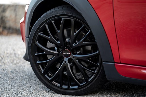 The edition model combines its exterior paintwork in the style of the historic rally winner in a market-specific manner with 17-inch John Cooper Works light-alloy wheels in Track Spoke Black design or 18-inch John Cooper Works light-alloy forged wheels in Cross Spoke Jet Black matt design and numerous other accentuations in dark colours. The frame and horizontal brace of the radiator grille are finished in high-gloss black, as are the inserts for the lower air intakes, the opening in the bonnet, the door handles, the fuel filler flap, the tailgate handle, the MINI logos at the front and rear as well as the surrounds for the headlights and rear lights.