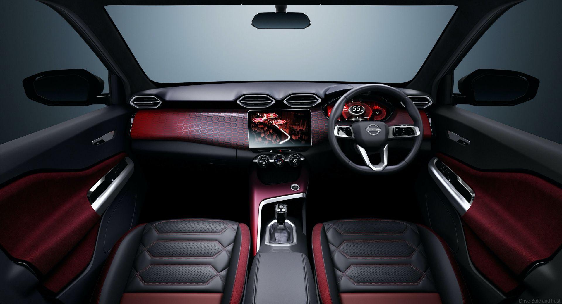 On August 4th this year, Nissan India unveiled the interior of this Nissan crossover, based on the concept artwork it appears that it will be as striking as the exterior design. Resplendent in a red-on-black colour combination, the flowy interior design appears to follow a minimalistic theme, with not many physical buttons apart from the three dials for climate control settings. An 8-inch central infotainment system and fully digital instrument cluster are present, but it remains to be see whether or not they will make it into the production variants. Meanwhile, the hexagonal air vents are reminiscent to those on Lamborghinis of the current era.