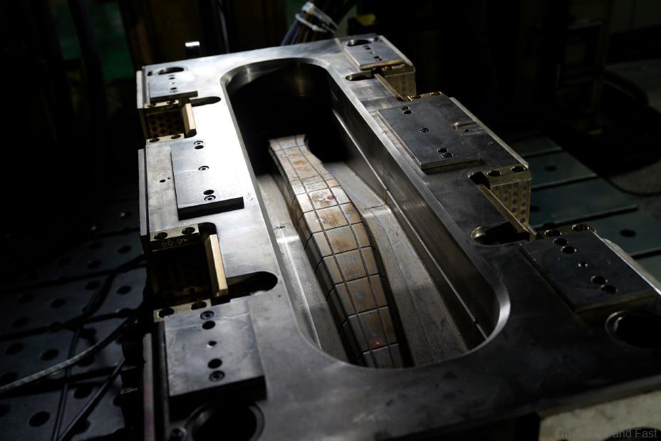Nissan found a new approach to the existing production method known as compression resin transfer molding. The existing method involves forming carbon fiber into the right shape and setting it in a die with a slight gap between the upper die and the carbon fibers. Resin is then injected into the fiber and left to harden.
