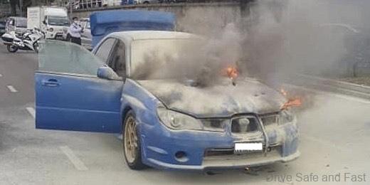We’re not exactly sure whether this is an Impreza WRX or just the standard Impreza sedan that has been modified. The rims and exhaust pipe at least don’t come stock on the Impreza sedan. We wonder what exactly was the source of the fire.