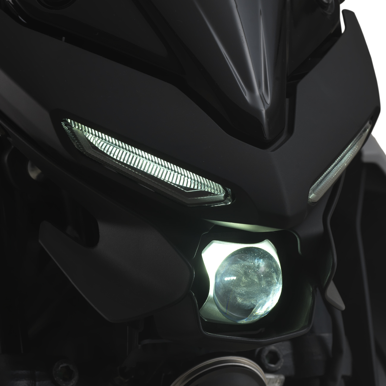 Standard equipment includes LED headlight, LED turn indicators with hazard light, LCD meter panel, inverted front forks and dual-channel ABS for both the front and rear wheels.